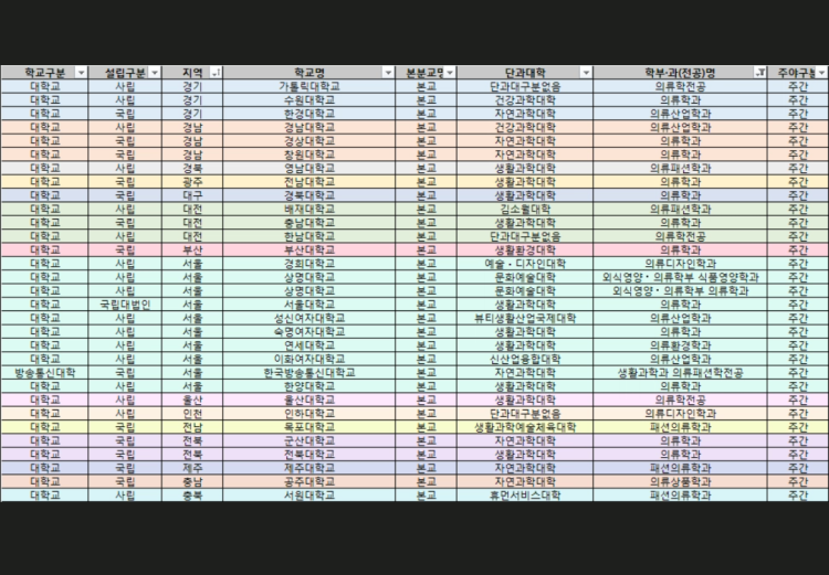 의류학과 4년제 대학 어디어디있나요? (대학교 낮은대도 써주세요!)