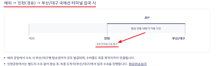 국제선 연결편 내항기를 이용할 경우에는 안타깝게도 인천공항 면세점을 이용할 수 없습니다.