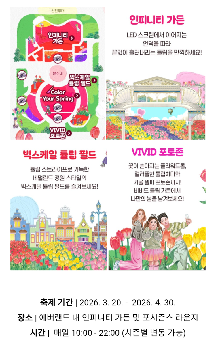 올해 에버랜드 튤립축제는 3월 20일 ~ 4월 30일까지입니다